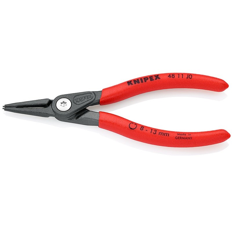 Łatwy i pewny montaż: wciskane i zaciskane końcówki szczypiec wykonane ze stali sprężynowej o dużej gęstości zapewniają dużą wytrzymałość na wysokie obciążenia, np. podczas demontażu zapieczonych pierścieni. Duża powierzchnia styku oraz pozycja końcówek zabezpieczają pierścień przed spadnięciem podczas pracy.