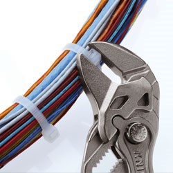 Szczypce-klucz specjalnie obrabiane laserowo dla dobrego chwytu: chwytanie główki opaski zaciskowej, ściskanie i zwalnianie – bez przecięcia